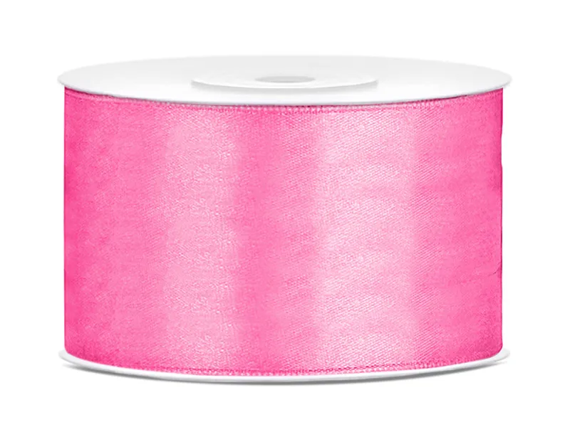 Tasiemka satynowa w kolorze różowym, szerokość 38 milimetrów, długość 25 metrów.